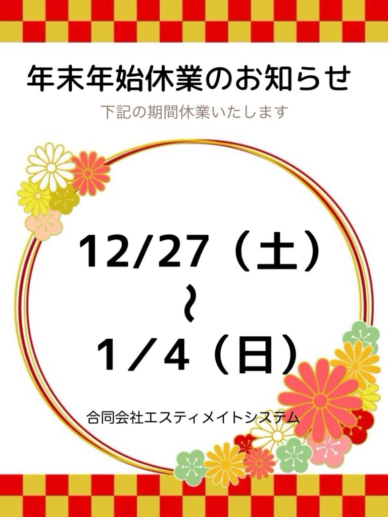 2025-12-25 / 最終更新日時 : 2025-12-25 Web担当 業務日記 年末年始休業のお知らせを掲載しました 年末年始休業について(2025.12) ↑こちらで、年末年始休業についてお知らせしました。 今年も年の瀬が迫ってまいりました。 当社では12月27日(土)~1月4(日)の期間、お休みをいただきます。 休業期間中もメールフォームからメールをお送りいただけますが、返信は1月5日(月)以降になります。 ご理解お願いします。 更新情報を受け取る FacebookXCopy